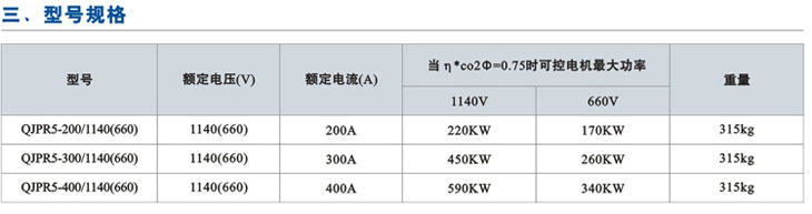 QJPR5防爆軟起動(dòng),防爆標(biāo)準(zhǔn)為Exd〔ib〕I (150℃),適用于含有爆炸性氣體(甲烷)和煤塵的礦井中。防爆軟起動(dòng)的額定電壓為1140V